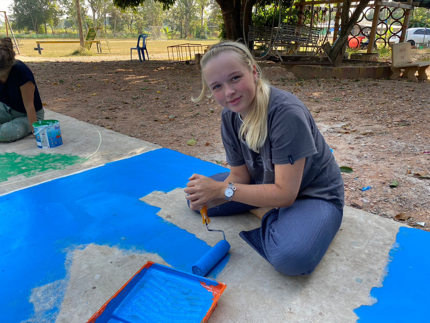 - Paint walls, repair furniture, and build communal facilities